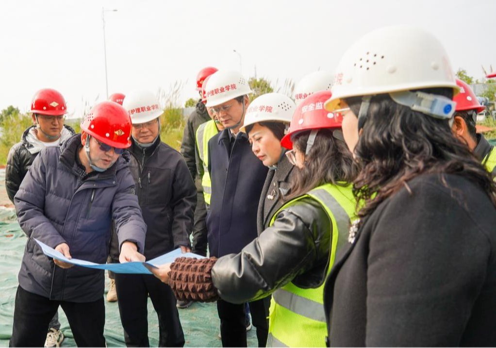 12月11日,学院党委书记江涛,党委副书记、院长张先庚带队检查卫生健康实训基地项目推进情况,院领导陈劲松、罗小强、梁小利参加,基建处、各参建单位主要管理人员陪同。