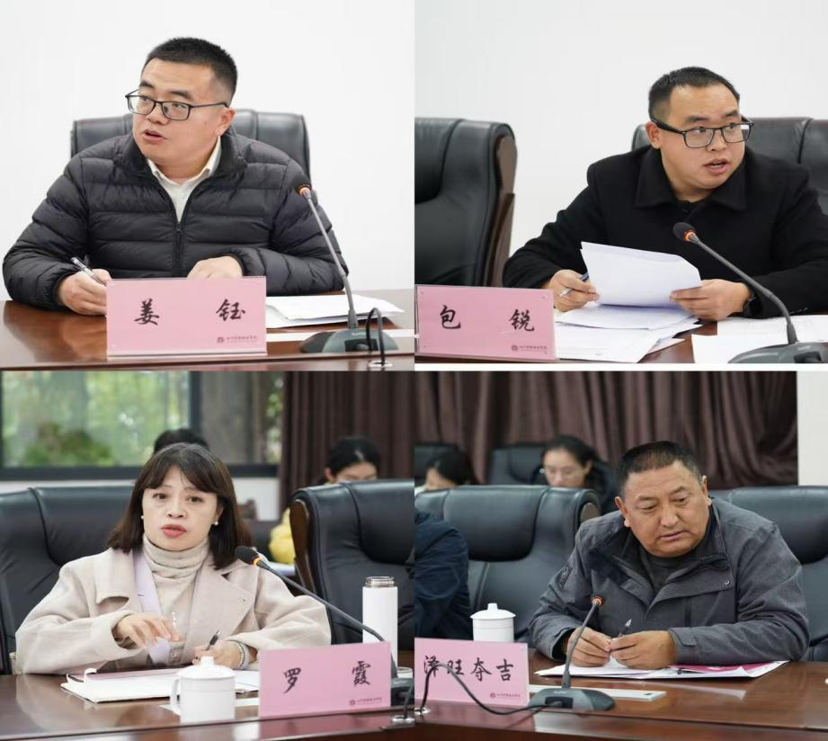 学院驻村干部姜钰、包锐汇报帮扶地乡村振兴产业发展及红色康养基地建设情况。与会人员围绕红色康养基地建设提档升级、民族地区中药产业发展、产教深度融合等方面进行深入交流,现场气氛活跃,讨论热烈。