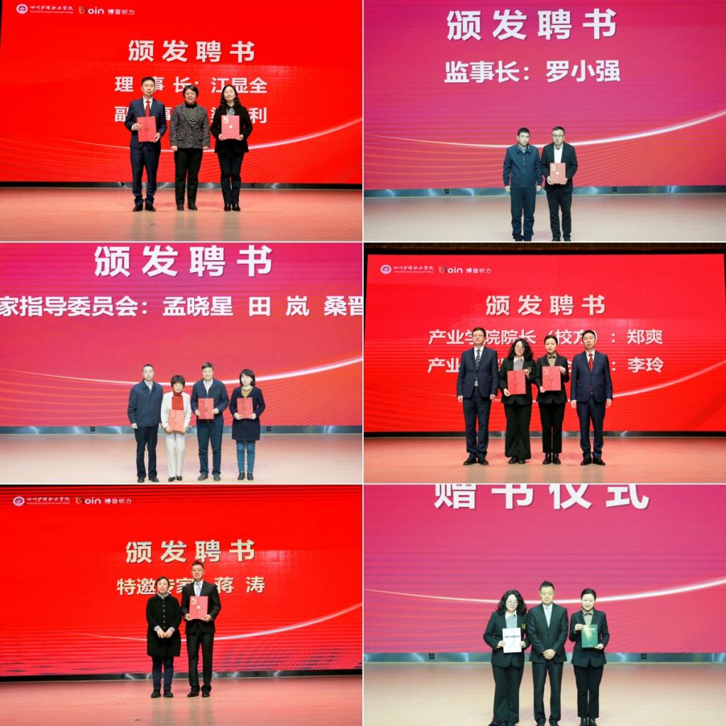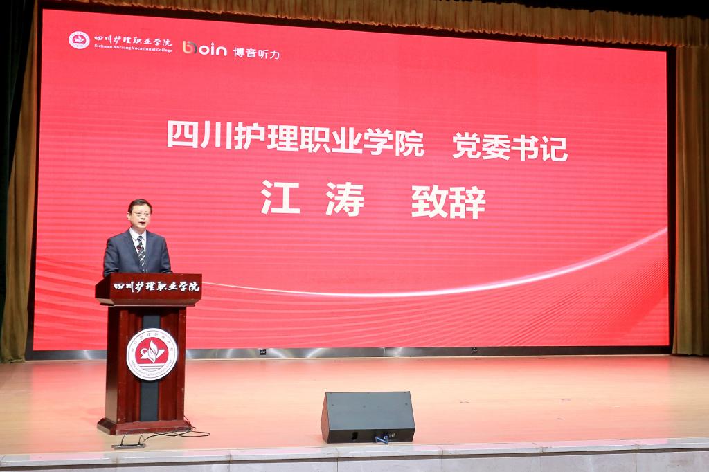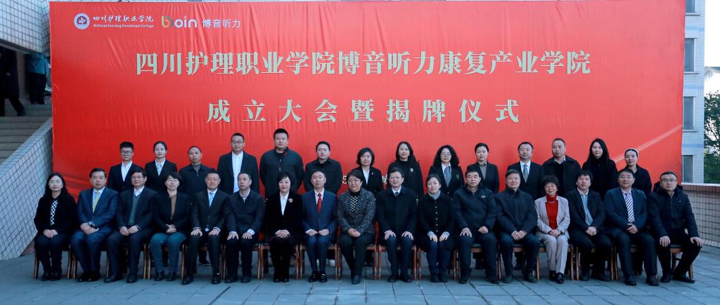 1月11日,beat365官方网站博音听力康复产业学院成立大会暨揭牌仪式在学院成都校区举行。四川省卫生健康委二级巡视员曹力、科教处处长张翻蓉、四川省人社厅职业能力建设处一级调研员李国平、四川省康复辅具技术服务中心主任陈光庆等有关领导出席大会并讲话。学院领导、博音听力技术(上海)有限公司高层管理团队、行业专家及全体教职员工共360余人参加大会。