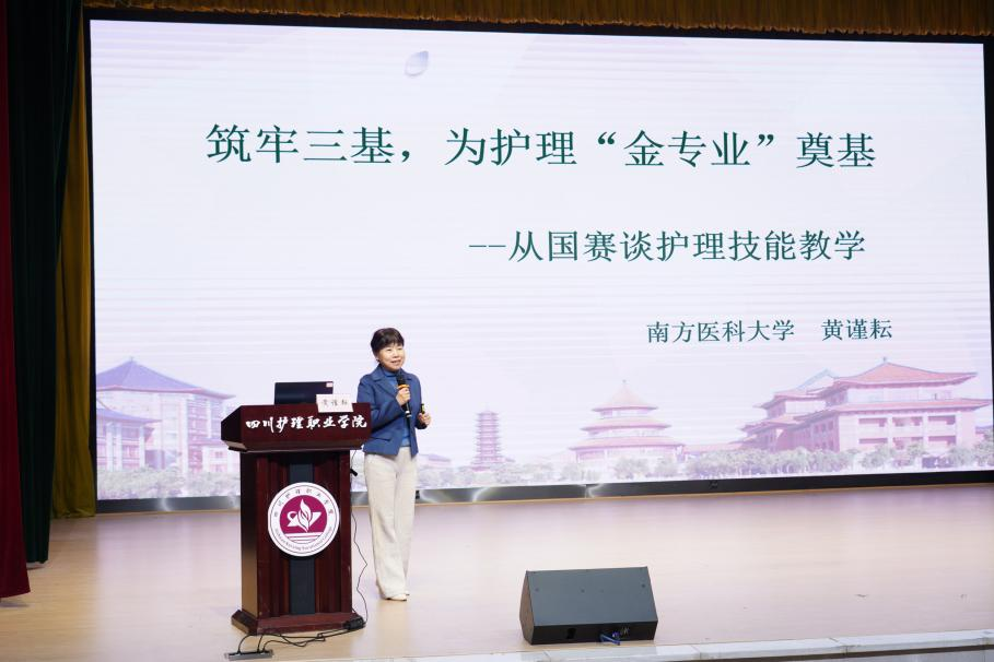 黄谨耘以筑牢三基,为护理“金专业”奠基——从国赛谈护理技能教学为题,从认知拓展、经验分享、理念探索三个方面,详细剖析第十届中国大学生医学技术技能大赛(第一届全国护理本科技能竞赛)全过程,巧妙地将参赛经验融入护理日常教学。她提出要利用竞赛平台,实现以赛促教、以赛促学、以赛促改、以赛促训,共同培养出更多服务有温度、专业有深度的护理人才,为护理事业的未来发展贡献力量。