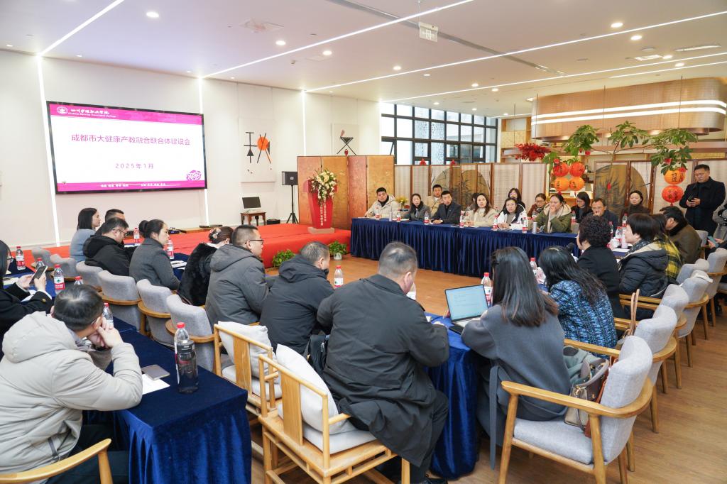 为深入贯彻落实党的二十届三中全会精神和现代职业教育体系建设改革要求,推动“一体两翼”建设,深化委市共建、委区共建,加快校企深度融合,助推地方卫生健康与经济发展,1月15—16日,学院院长张先庚教授带队开展寒假产教融合专项调研活动。深入成都经开科技产业孵化园(四川中医药大健康产业园)、德阳文旅大健康集团洽谈合作项目。副院长梁小利教授及党政办公室、产教学院、教务处、学科科研处、财务处、学工部及各系部负责人共30余人参与调研。