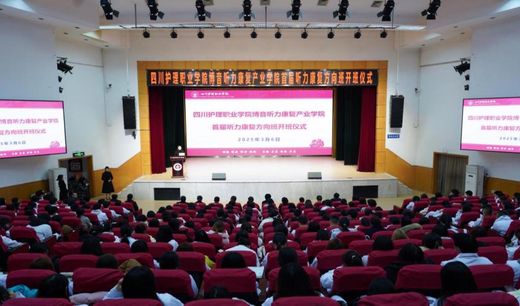 为深入贯彻落实党的二十届三中全会和全国、全省教育大会精神,强化教育对科技和人才支撑作用,增强职业教育适应性,3月6日,学院举办全国首个听力康复产业学院首届听力康复方向班开班仪式。学院院长张先庚、四川省残联原二级巡视员孟晓星、上海市第六人民医院耳鼻喉科主任医师冯艳梅出席开班仪式。博音听力技术(上海)有限公司管理团队、学院相关部门负责人及康复技术系师生代表共计370余人参加。开班仪式由副院长梁小利主持。