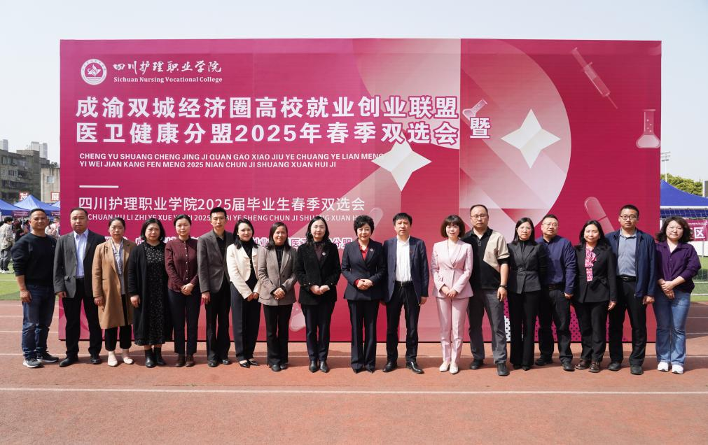 3月27日,学院操场上人头攒动,由成渝双城经济圈高校就业创业联盟医卫健康分盟、龙泉驿区人社局与学院联合主办的医药卫生类双选会正在这里如火如荼进行。现场既有传统医疗卫生机构的招聘专区,也有AI面试指导服务站、“三支一扶”“西部计划志愿者”、征兵入伍等政策咨询台,还有展示服务区——各系部的学生展示专业技能,服务用人单位和毕业生。现场,150余家用人单位架起展台,1600余个岗位虚位以待,3000余名毕业生怀揣职业梦想穿梭其间。
