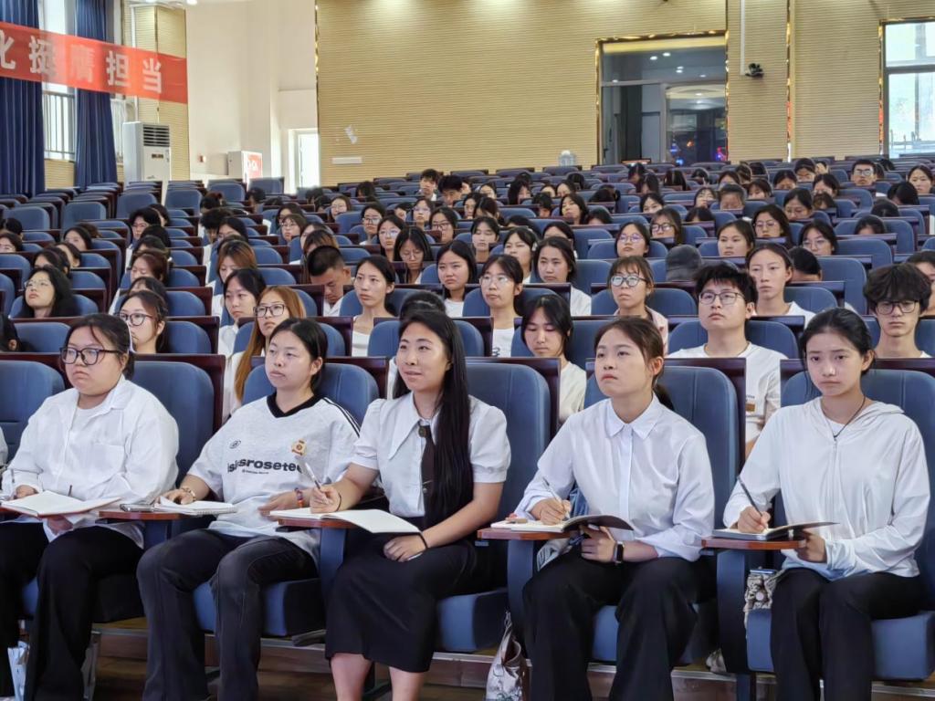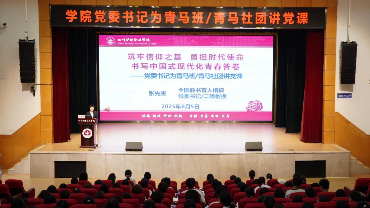 6月5日下午,党委书记张先庚教授以《筑牢信仰之基 勇担时代使命 书写中国式现代化青春答卷》为题,为成都、德阳校区300余名青马班和青马社学员上了一堂生动的党课。