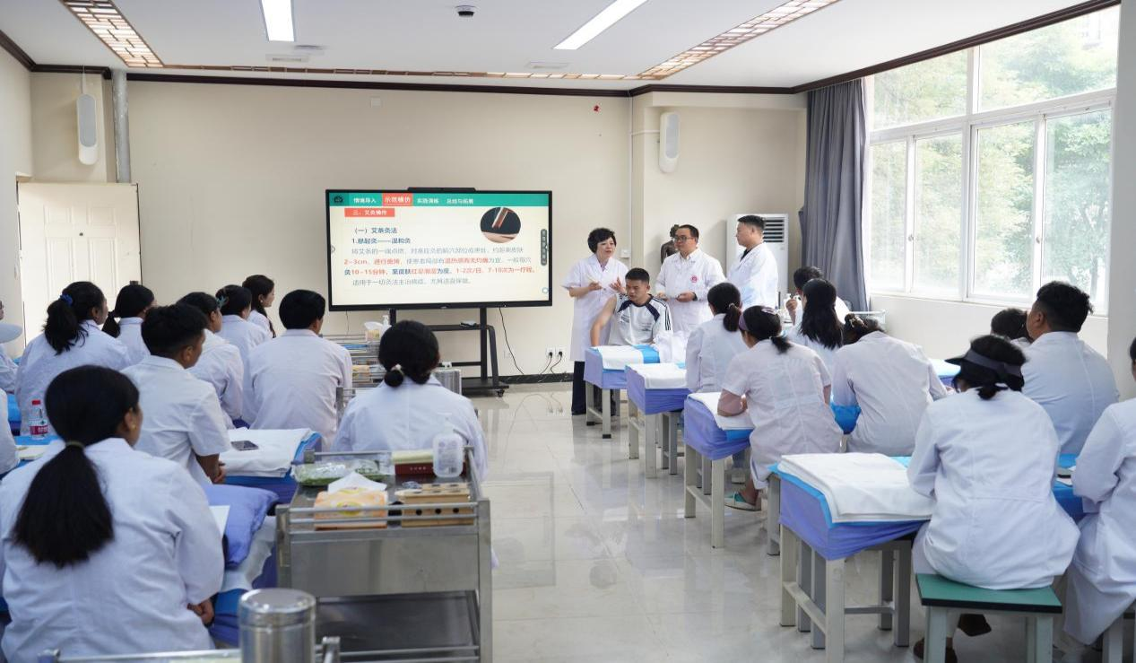 专题讲座结束后,张先庚为大家进行了“艾条灸”实操指导与演示,叮嘱大家要珍惜机会、深入学习、学以致用,特别嘱托学院毕业的学生,要牢记“感爱专创献”培养理念,感恩党、学校和家乡的培养,做“情怀深、技术精、能力强、善创新、讲奉献”的表率,为家乡建设出力,为学校争光、为国家做贡献。