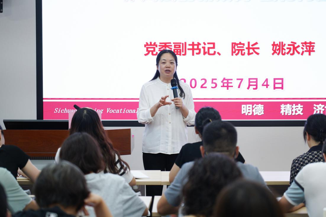 面对学院“双高”建设与“升本”重要任务,姚永萍回顾了学校近年来所取得的成就,激励教职工以“功成不必在我”的境界与“功成必定有我”的担当,奋力书写教育强国、健康中国建设的川护新答卷。