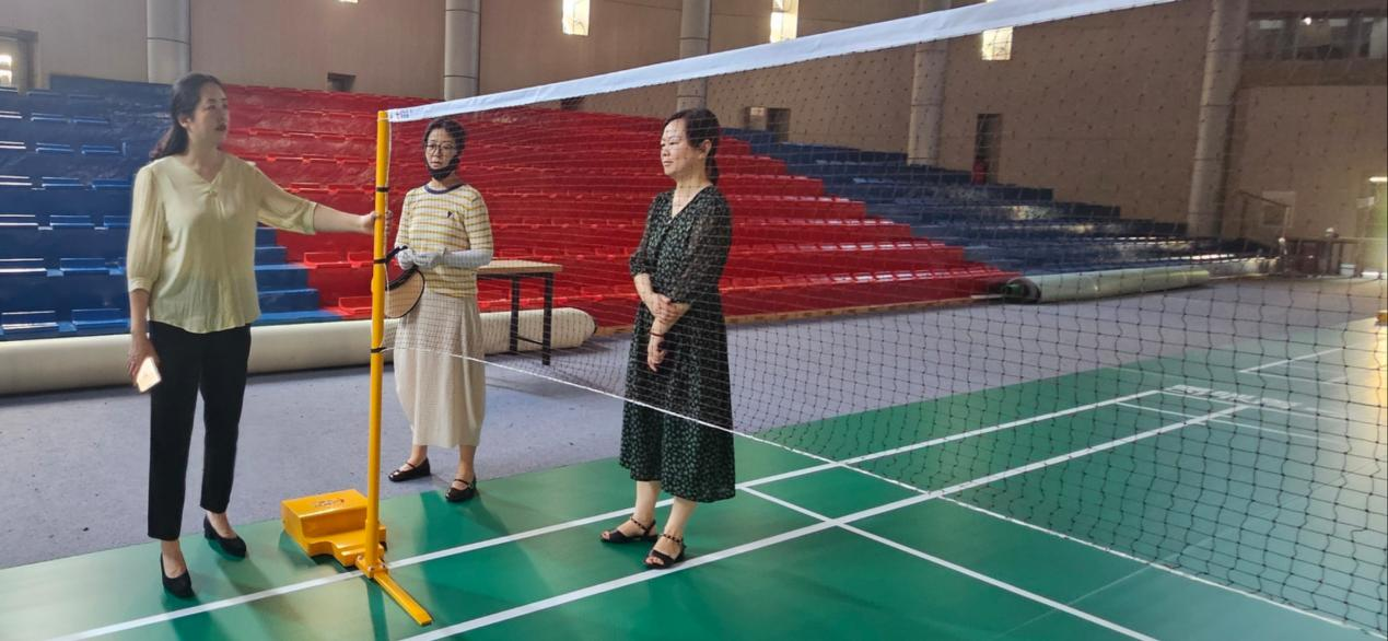 7月21日上午,院长姚永萍一行冒着高温酷暑调研指导成都校区体育馆羽毛球场和康护形象礼仪实训室建设工作。