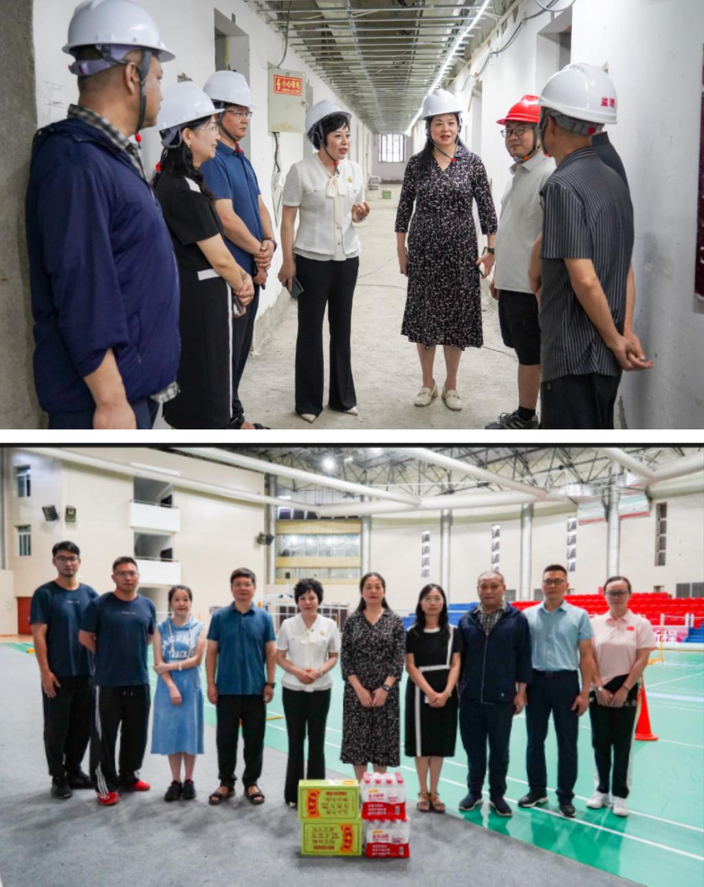 张先庚一行首先来到招生就业处,详细了解今年新生录取情况,感谢招生录取工作人员的辛苦工作,要求严格按标准为学院认真选才;走进参加第十二届世界运动会的师生志愿者代表和参加世界职业技能大赛的师生中,感谢他们为学院树立了良好形象,为学院争光、争荣誉;随后来到学生宿舍维修、综合楼电力改造、安保监控中心、体育馆等现场,详细查看施工现场、询问施工进度、了解工作开展情况等,要求务必做到质量安全第一,保证工期,确保正常开学,并为坚守岗位的人员送上清凉物资,感谢大家为学院的辛勤付出,叮嘱大家在工作的同时要切实加强安全生产,注意防暑降温,保障身心健康。