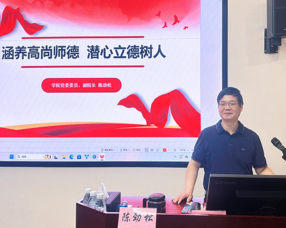 陈劲松作题为“涵养高尚师德,潜心立德树人”的专题讲座,他强调新教师需尽快完成角色转换,深入阐释高校教师与辅导员的责任和使命。他重点对师德师风重要论述与政策文件、高校教师师德失范案例、学院师德师风建设三方面进行讲解。他希望全体新教师修德明纪守纪,筑牢师德底线,不断提升能力,成长为一名新时代优秀的高校教师!