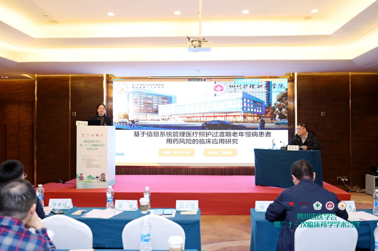 姚永萍教授负责的国家级继续教育项目“医疗照护过渡期慢性病患者用药风险管理提高班”在分会场同时进行。提高班邀请四川大学华西医院临床药学部主任何金汗、主任药师苏娜,南方医科大学药学院副教授吕琳,四川省人民医院药学部副主任杨勇,中山大学附属第一医院广西医院药学部主任李佳,罗湖区妇幼保健院药学部负责人许夏燕,四川省第三人民医院心内科主任杨晓瑜,聚焦“慢性病患者用药风险管理”核心理念做专题培训。专家学者们围绕《基层药学服务现状和县域赋能行动》《肥胖症的药物治疗》《医师、药师协同药物治疗管理规范与实践》《社区药学照护规范的解读与实践》《AI驱动药学服务转型与慢病管理新范式》《呼吸系统常见疾病发生机制与药物治疗管理》《基于信息系统管理医疗照护过渡期老年慢病患者用药风险的临床应用研究》《高血压患者医疗照护过渡期用药风险管理》等多个前沿与实践议题,结合丰富临床案例与研究数据,展开系统讲解与深度剖析。药学系向俊蓓、徐曾涛、黄鑫,谌茜等教师担任会场主持。