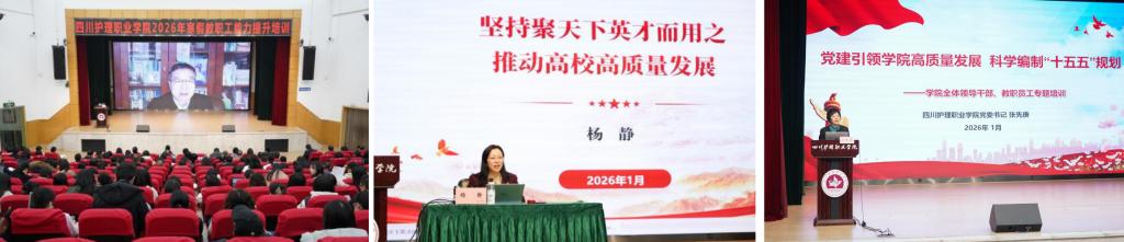 为加强内涵建设,助推学校高质量发展,1月16日至18日,我校在成都和德阳两校区同步举办教职工能力提升系列培训。全体校领导、教职工及附属医院教师代表等近600人参训。