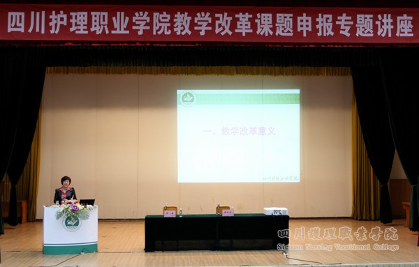 张院长是二级教授、博士生导师,长期从事高等护理教育与管理、老年与社区护理研究。她针对学院教师教改意识、教改能力等现状着重从以下四个方面进行了阐述与指导。一是强调推进教改的重大意义。她指出:教改是加强学院内涵建设有效途径,提高教师专业能力有力举措,更是提升教学质量的核心,每个教师必须树立教改意识,积极参与教改。二是注重提升申报质量与技巧。在克服心理障碍方面做到“四有”、树立教改思维要有“四新”、团队协作要“四整合”及在提升质量上要有“四清”。三是明确教学改革选题的思路。要坚持以学生为中心,以能力培养为核心,紧贴高职高专的发展趋势,尤其是出现的新情况、新问题,突出“六性”原则,进行“科学、可行、先进”选题。四是确立好申报与研究方法。她结合自身开展科研、教改实例,从理论到实践,生动形象的阐述了如何确定题目和撰写申报书的内容。申报题目要“精炼、新颖、准确”,设计路线清晰、进度安排合理。张院长根据她长期积累的研究成果和严谨求实的教学态度,深入浅出、声情并茂的奉献了一场精彩、生动的学术报告。整个学术气氛活跃、热烈,引起全体师生的共鸣。