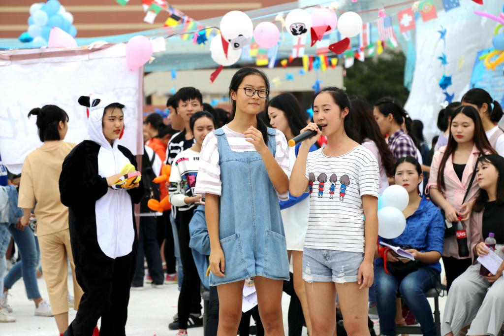 60个班级共组合成15支活动队,举行了融知识性、趣味性和活动性为一体的各项游戏活动。运动场上欢声笑语汇成一片,有趣的游戏、激昂的鼓声、传神的舞蹈和可爱的cosplay吸引着同学们踊跃参与。