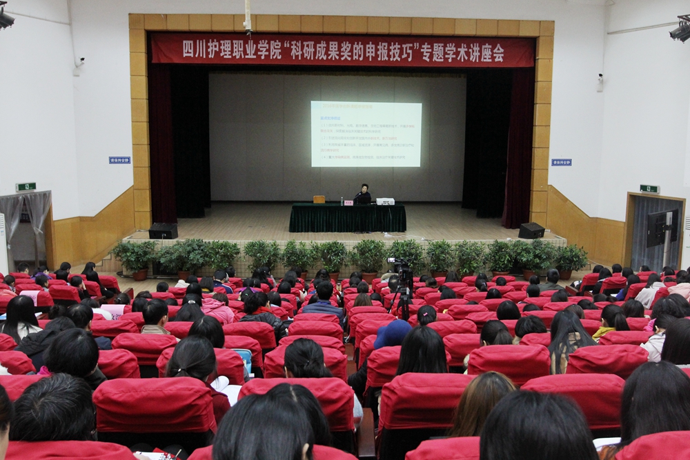 11月24日下午,第43届南丁格尔奖章获得者姜小鹰教授在龙泉校区学术报告厅举行了主题为“科研成果奖的申报技巧”专题学术讲座。学院专兼职教师和学生代表共计300余人参加了讲座,专题讲座由学院二级教授、博士生导师、张先庚院长主持。