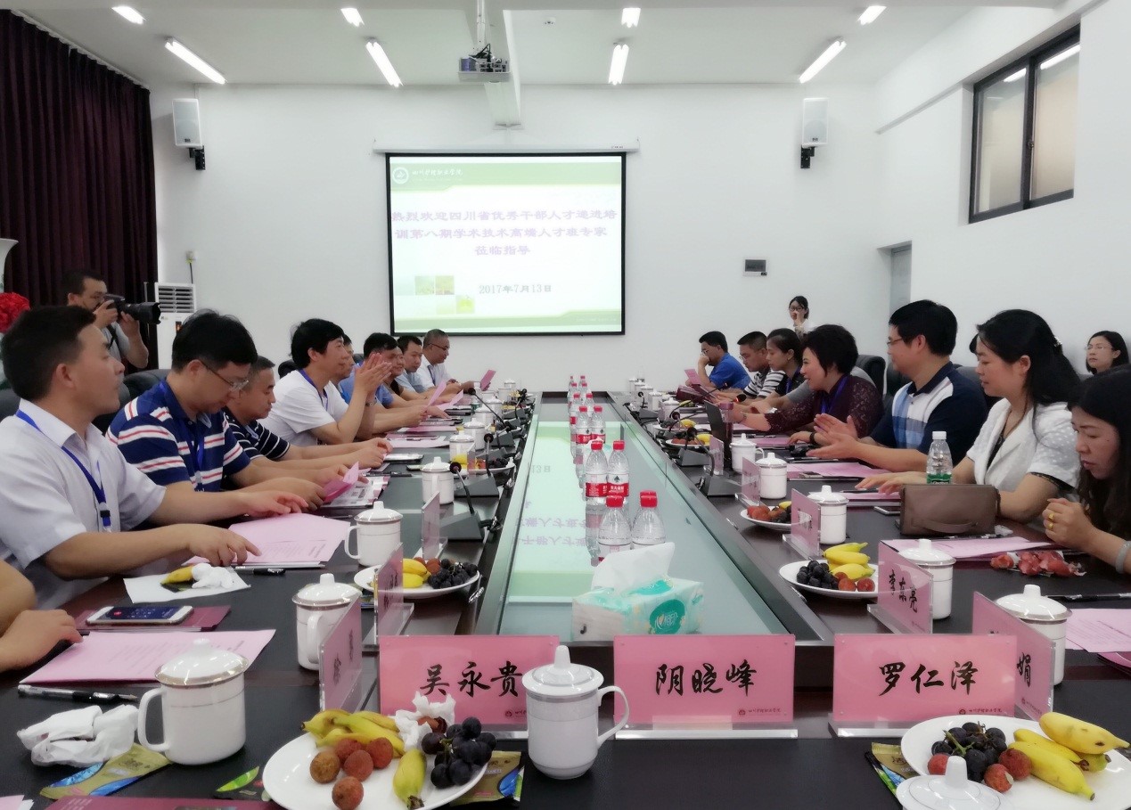 7月13日下午,四川省优秀干部人才递进培训(第八期)学术技术高端人才班领导专家一行22人莅临beat365官方网站德阳校区调研指导。张先庚院长作为学员参与调研,副院长陈劲松、赵斌、姚永萍和相关职能处室领导参与调研。