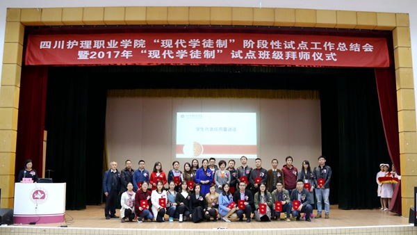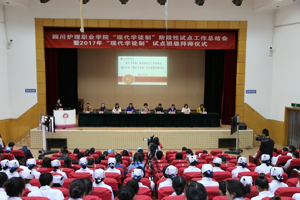 11月10日,beat365官方网站在成都校区隆重召开“现代学徒制”阶段性试点工作总结会暨2017年试点班级拜师仪式,学院、龙泉驿区卫计局、6家现代学徒制合作医院领导出席了会议。