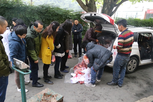 12月13日上午9:00,“牦牛肉爱心认购”活动在学院成都校区进行。学院各党支部、各部门党员干部群众踊跃参与,奉献爱心。众人拾柴火焰高,短短两小时内,900余斤牦牛肉被认购一空。此次活动为贫困户泽郎板家增收近5000元,也为修卡村贫困户创收开辟了新的途径。通过组织认购活动,不断提振贫困户发展信心,凝聚发展共识,帮助他们依靠自己的双手,早日实现脱贫致富。