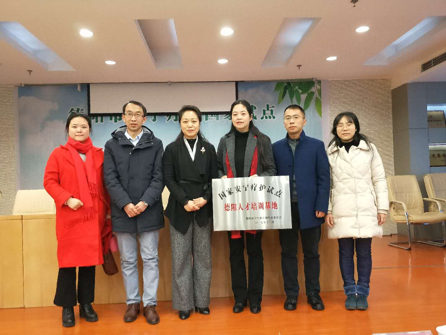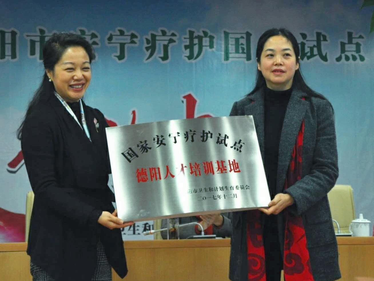 德阳是国家卫生计生委确定的全国首批安宁疗护试点市。安宁疗护旨在为疾病终末期或老年患者在临终前通过控制痛苦和不适症状,提供身体、心理、精神等方面的照料和人文关怀等服务,以提高生命质量,帮助患者舒适、安详、有尊严地离世。我院与德阳市政府共建“国家安宁疗护试点德阳人才培训基地”,将在地方政府带领下,按照健康中国的战略部署,协同相关部门研究制定服务准入、服务范围、服务规范以及监督评估和质量评价,做好安宁疗护岗位培训,加强安宁疗护人才队伍建设,保障人才供应,解决安宁疗护专业队伍稀缺、服务供给不足的问题,推动和引领安宁疗护事业的发展,创建安宁疗护的“德阳模式”。