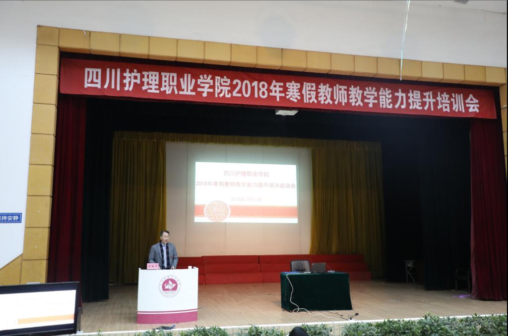 1月12日上午,2018年寒假教师教学能力提升培训会在学院多功能厅召开,学院特邀重庆三峡医药高等专科学校校长周建军教授、书记作题为“转型时期的体验与感悟”专题讲座。讲座由姚永萍副院长主持,院校领导及全体专兼职教师参加讲座。