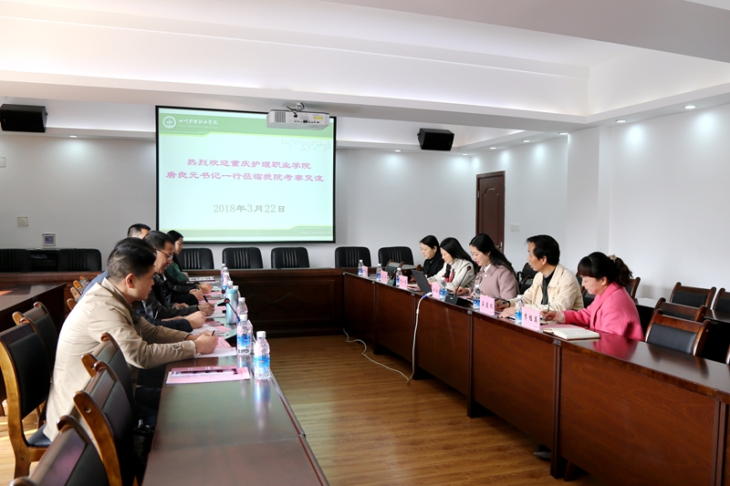 2018年3月22日上午,重庆护理职业学院唐良元副院长一行8人到我院考察交流。学院副院长姚永萍及及相关部门负责人参加考察交流活动。