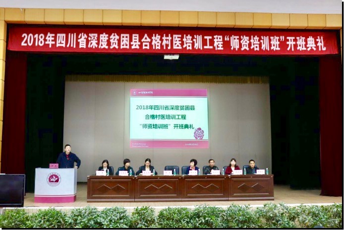张院长做了热情洋溢的致辞,并简要介绍了该项目重大而深远的意义。她指出,该项目是我省全面贯彻落实十九大精神、习近平总书记来川视察重要讲话精神,做好《四川省贫困县卫生计生人才振兴工程实施方案》的重要工作,实施“乡村振兴战略”、实现“一村一医”“一乡一全科”的重要举措,责任重大、任务艰巨、使命光荣,定高度重视、高效落实。希望参培学员感恩党的扶贫政策,尽快转变角色、勤奋学习、全面提升能力与素养,做一名新时代、有担当、有作为的好教师、好医生,为振兴基层人民群众健康作出应有贡献。雷激副处长介绍了此次培训的背景与目的,希望学员们珍惜培训机会,好学深思,学成后将所学知识传递给当地村医,并积极推荐优秀的村医来参加师资培训。教师代表王景副教授和学员代表陶成医师分别发言,共同表达了完成培训任务、守护基层健康的决心。