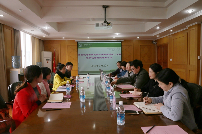 2018年3月20日,西南医科大学护理学院·卫校副院(校)长陈燕华一行到我院考察交流。学院副院长陈劲松、姚永萍及相关部门负责人参加考察交流活动,姚永萍副院长主持会议。