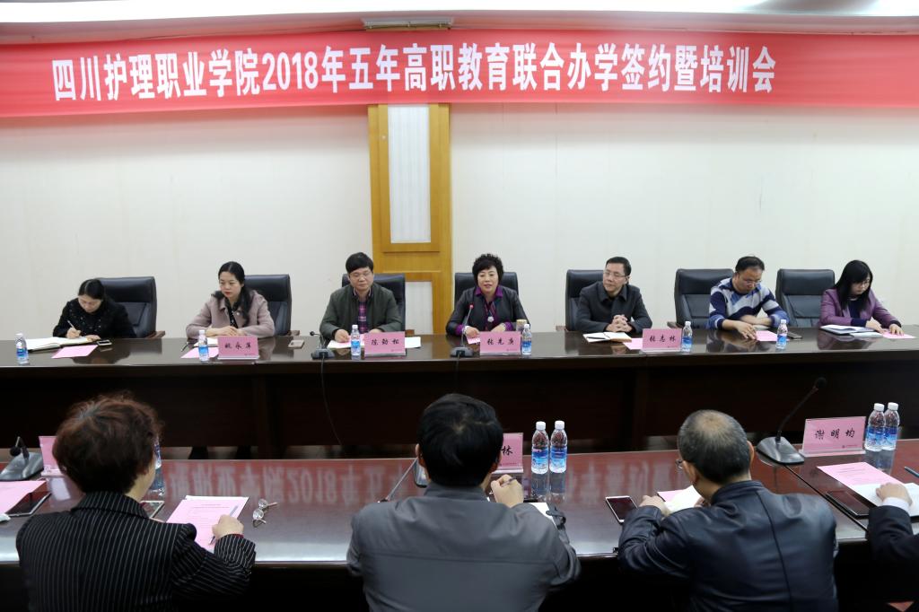 3月21日,2018年五年高职教育联合办学签约暨培训会在学院成都校区顺利举行。学院院长、党委副书记张先庚教授,党委副书记张志林,副院长陈劲松,副院长姚永萍,四川省南充卫生学校校长祝长林,中医药大学附属医院针灸学校书记张美林,四川省宜宾卫生学校校长谢明均,成都铁路卫生学校校长谭崇杭,四川省达州中医学校校长唐启烈出席了签约仪式。会议由副院长陈劲松主持。