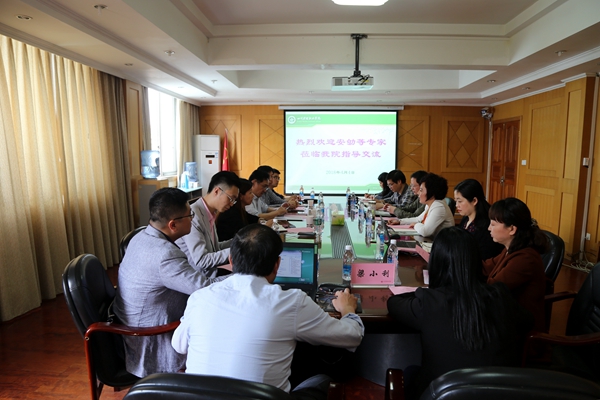 2018年4月4日下午,四川省医院协会会长、中国医院品质管理联盟副主席安劬,四川健康产业研究院院长陈文兴,老肯医疗科技股份有限公司董事会秘书、老肯大学执行校长付亚娟等一行8位专家莅临我院指导交流,学院党委书记江涛,院长张先庚,副院长陈劲松、姚永萍及相关部门负责人参加交流。交流会由副院长陈劲松主持。
