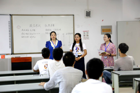 巡考前,张先庚院长、姚永萍副院长从考生到场情况、监考老师到场情况、考场保障情况三个方面分别对两校区巡考人员进行巡考前的培训。