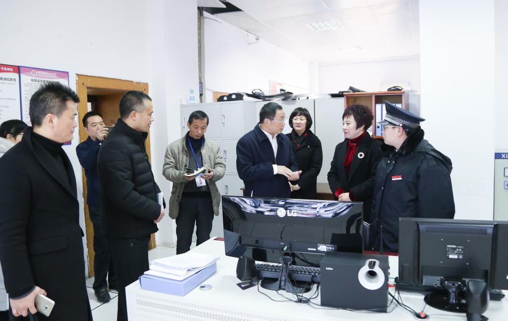 何主任一行在张先庚院长等陪同下,实地察看微型消防站、视频监控中心、配电房、门卫室等场所,了解学院开展今冬明春火灾防控、岁末年初安全生产风险防范、反恐等工作的开展、落实情况。何主任对学院在重视安全、落实安全工作等方面给予了肯定,对学生食堂、学生宿舍、网络中心机房、实验室毒麻药品及危化品等安全隐患高发的重点关键区域的管理提出具体指导意见,并勉励值班人员在寒假与春节期间,要以高度的责任心,认真履职,全力做好春节期间的值班工作。