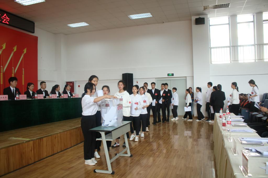 随后,学院团委副书记、第四届学生会主席团成员徐雅莉在大会上做了题为《建功新时代共筑川护梦 团结带领全院学生为把我院建成省内一流全国知名的高水平现代医药卫生类高职院校而努力奋斗》的学生工作报告,学院第四届学生会主席、主席团成员李彦红宣读了《beat365官方网站学生会章程》。学生工作会副部长段妍妍宣读了《beat365官方网站第一届学生委员会选举办法草案》、大会选举监票人、计票人名单和beat365官方网站第一届学生委员会委员候选人名单,全体代表举手表决并通过了草案和名单。大会选举产生了张书菡、陈子婧、李超、赵欣、青沁、李春燕、万皓然等7名代表为第一届学生代表大会委员会委员。