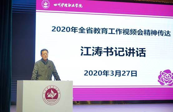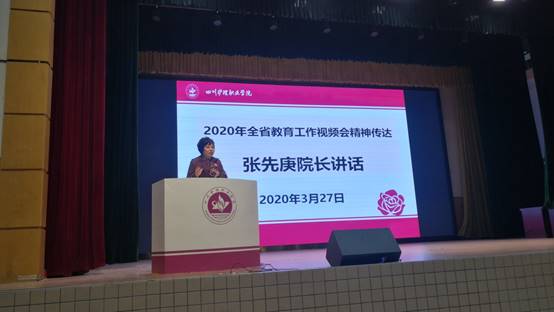 3月27日,2020年全省教育工作视频会议在成都召开。我院全体院领导及中层干部,在成都校区学术报告厅分会场收看本次会议。