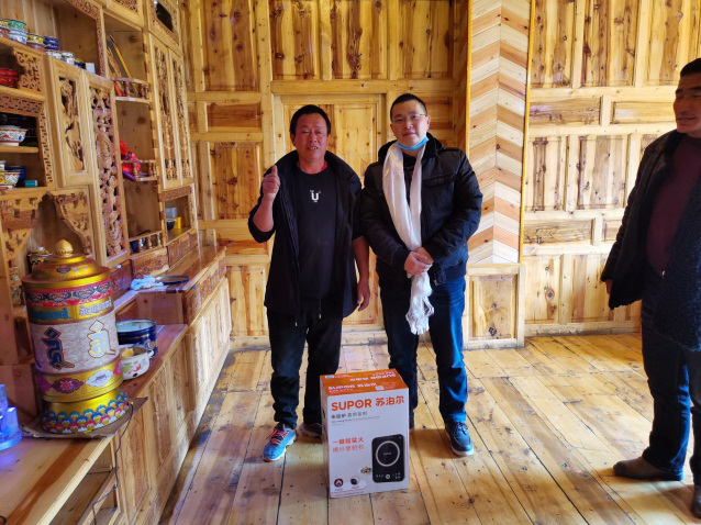 学院党委委员、副院长赵斌到结对帮扶对象泽郎板家走访慰问。赵院长详细询问了解泽郎板的身体状况、家庭生活情况以及现阶段存在的困难,叮嘱他保重身体,坚定生活信心。了解到泽郎板长期在牛场放牛,赵斌副院长代表学院向其赠送价值1000元的帐篷一个。随后,赵斌副院长赴实地了解我院前期捐赠村民的石磨机的使用情况。调研组还专门派员对贫困户门基进行慰问,并向其赠送电磁炉。