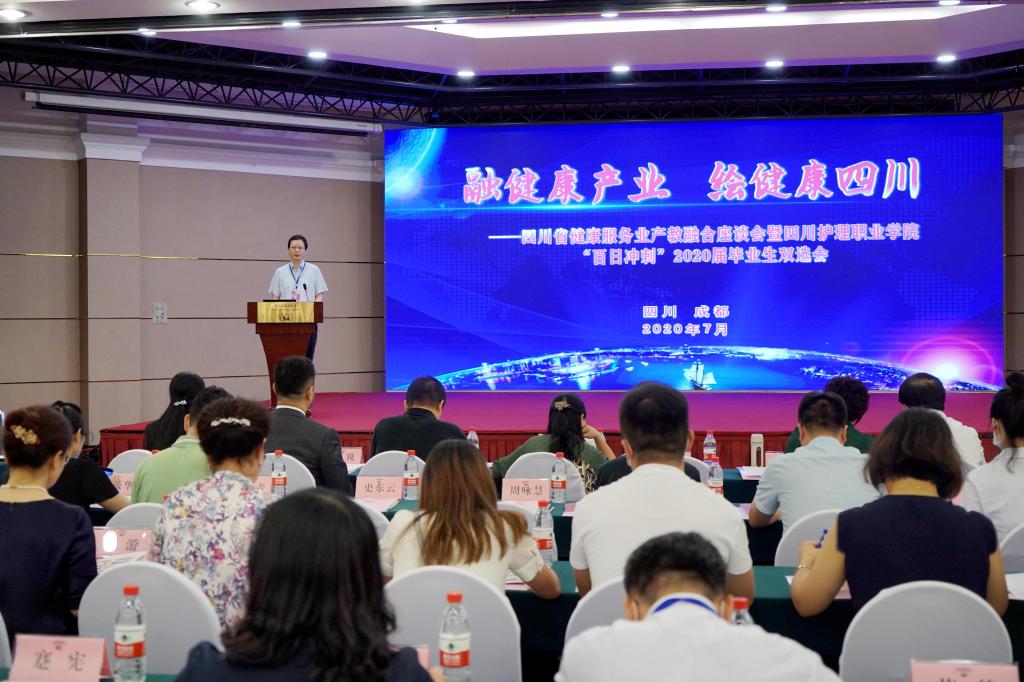 为贯彻落实“健康中国”战略,加快推动健康服务行业产教融合建设,促进教育和健康服务体系人才、智力、技术、资本、管理等资源要素集聚融合,优势互补,打造支撑卫生健康高质量发展的新引擎。2020年7月15日,beat365官方网站在成都组织召开“四川省健康服务业产教融合座谈会”暨“2020届毕业生‘百日冲刺’双选会”,来自省内外39家知名企业和医院代表参会。四川省卫生健康委员会健康服务业发展处、人事科教处等相关处室负责同志参加会议。