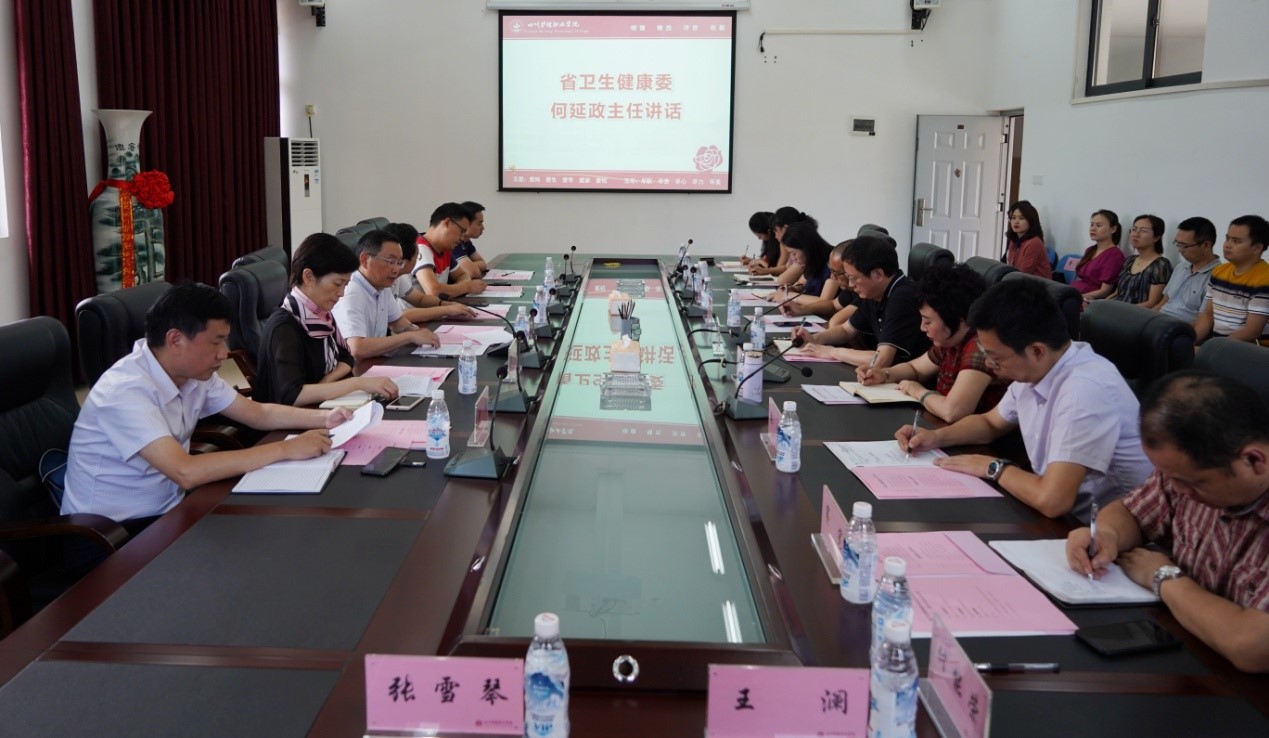 2020年9月10日,第36个教师节之际,省卫生健康委主任何延政到学院德阳校区开展教师节慰问并调研指导四川省医养专业人才培养中心项目。委办公室主任赵永红、委人事科教处长李红、委规财处副处长熊开举、委人科教处副处长钟海、委办公室四级主任科员李佳鑫陪同。学院党委书记江涛、院长张先庚、学院优秀教师代表等陪同。