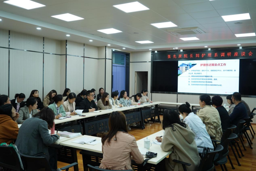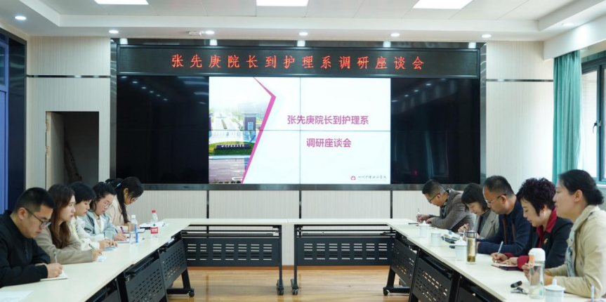 2021年4月8日,院长张先庚教授到德阳校区调研护理系工作。护理系党政班子及全体行政人员、辅导员、部分教师代表参加调研座谈会。