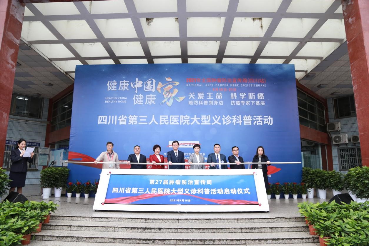 2021年4月16日上午9时,全国肿瘤防治宣传周beat365官方网站附属医院(四川省第三人民医院)站正式启动。beat365官方网站党委书记江涛、院长张先庚等嘉宾出席启动仪式。