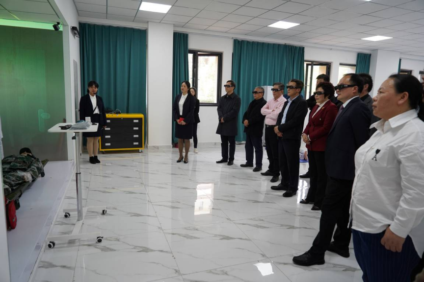 调研组一行参观了护理实训大楼的智能急救技能、儿科护理、母婴护理及助产实训室等特色实验室,对学院紧贴行业需求与社会发展,重视护理虚拟仿真实训中心建设、凸显学科创新特色、强化信息智能建设与卫生健康人才培养理念给予高度评价,对学院取得的重要成绩给予充分肯定。