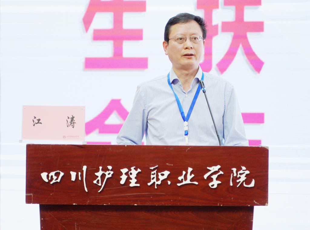 南丁格尔奖获得者、大赛仲裁组组长、总裁判组组长成翼娟教授对大赛作了全面系统的点评。她高度评价了我院作为承办单位在软、硬件等各方面的实力以及对本次大赛的精心筹备和安排,并提出了宝贵的指导建议。她指出,高职护理专业人才培养要与新时代职业教育发展深度融合,注重对学生评判性思维、心理素质、职业安全防护等能力的培养,以赛促教、以赛促学、以赛促改,培养更多优秀的高素质护理技术技能人才。