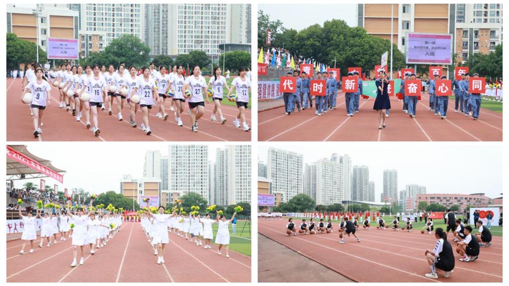 伴随着激昂奋进的运动员进行曲,学院护旗方队、裁判员方队、健美操队、篮球队、排球队、足球队等16个方队依次入场。