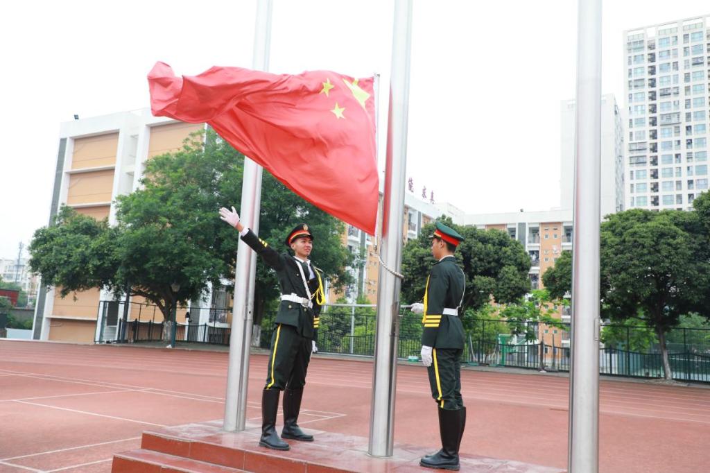嘹亮的国歌声在运动场上响起,在全体人员的注目下,鲜艳的五星红旗冉冉升起。
