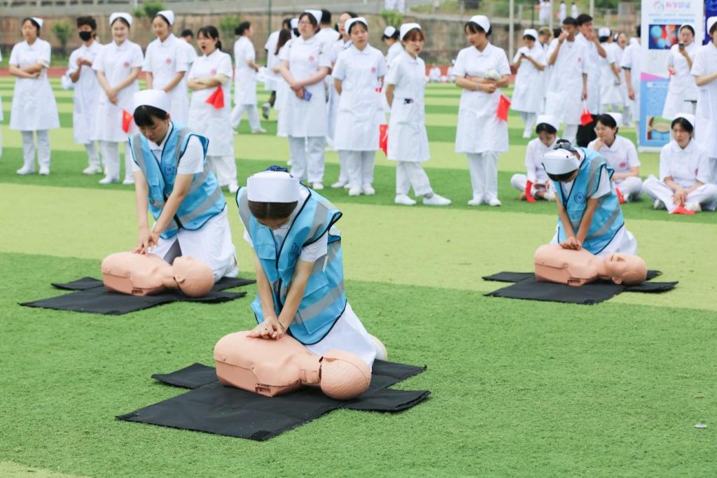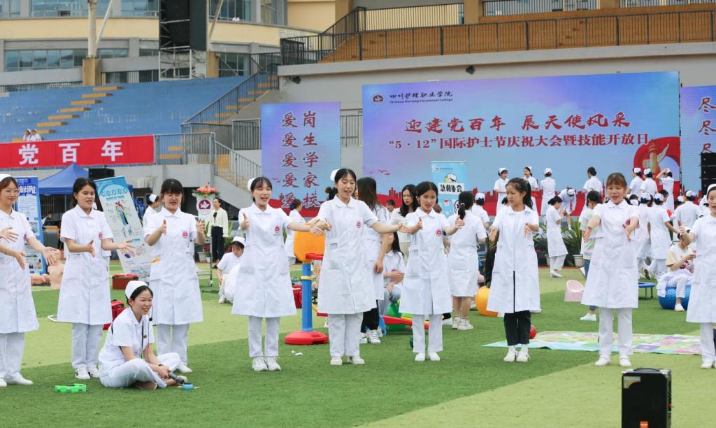 5月12日上午,以“迎建党百年,展天使风采”为主题的beat365官方网站“5•12”国际护士节庆祝大会暨技能开放日活动在德阳校区运动场举行。