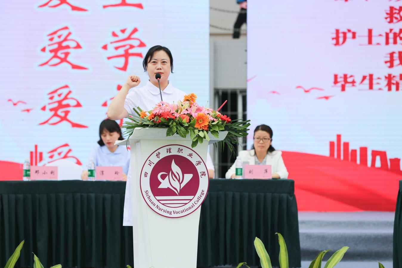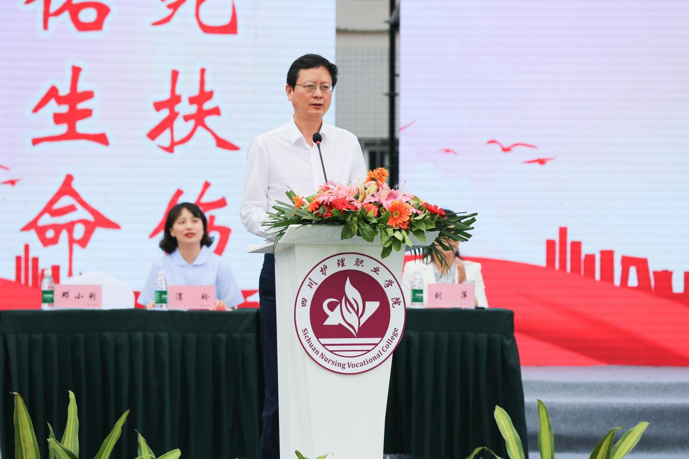 江涛书记对活动的举办表示祝贺,并向全体师生致以节日的问候。在建党100周年及学院创建四川省“双高”计划的关键之年,他希望,广大师生要从党史中汲取真理的力量、信仰的力量、道德的力量、实践的力量。教职员工能继续发扬“五爱五尽”家校情怀,争做“四有”好老师。同学们谨记南丁格尔誓词,不断丰富专业知识,扎实掌握专业技能,以一名执业护士的标准严格规范自己的言行举止。