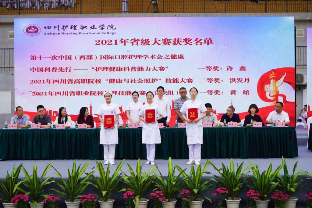 四川省护理学会副理事长陶岚、德阳市政府专职督学严康,学院党委书记江涛、党委副书记张志林、副院长陈劲松、党委委员、省卫生学校副校长卢燕等领导出席活动。学院职能部门、系部负责人及护理系全体师生参加庆祝活动。