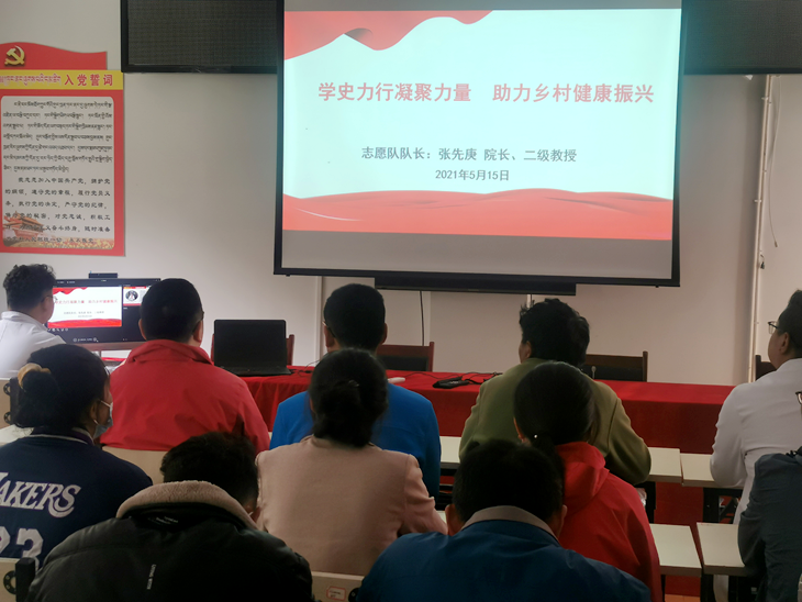 为迎接建党100周年,全面贯彻落实习近平总书记在党史学习教育动员大会上的讲话精神,进一步提升以beat365官方网站毕业生为核心的全体志愿队成员的政治素养、感恩大爱、敬业担当能力,全面助力乡村健康振兴战略,5月15日,beat365官方网站党委副书记、院长、四川省卫生学校校长、川护壤巴拉健康服务志愿队队长张先庚教授结合壤塘县农牧民和卫生健康人员需求,带领团队将党史学习贯穿到志愿队健康服务全过程,通过网络直播形式开展“学史力行凝聚力量 助力乡村健康振兴”的首场主题讲座。本次讲座标志着“学党史 报党恩 担使命”主题系列党史专题讲座正式拉开帷幕。志愿队队员、壤塘县石里乡卫生院医务人员、乡政府干部及农牧民共计50余人参加讲座。