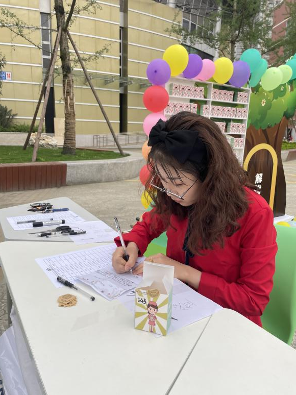 值得一提的是,“pick盲盒,解忧树洞”为学生办实事活动收集同学们在专业学习、人际交往、情感情绪、职业发展等方面的困惑。学生只需匿名或以昵称写下困惑,留下电话号码。心理健康活动志愿者将学生的困惑制作成“盲盒”,邀请老师们随机“pick”盲盒,为学生答疑解惑,盲盒最终由志愿者协助送至学生手中。