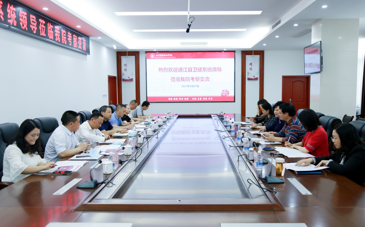5月27日,巴中市通江县卫生健康系统一行8人到我院成都校区,就对口帮扶通江中等卫生职业学校(简称通江卫校)进行考察交流。院长张先庚、副院长陈劲松、姚永萍及相关职能部门负责人参加交流座谈。