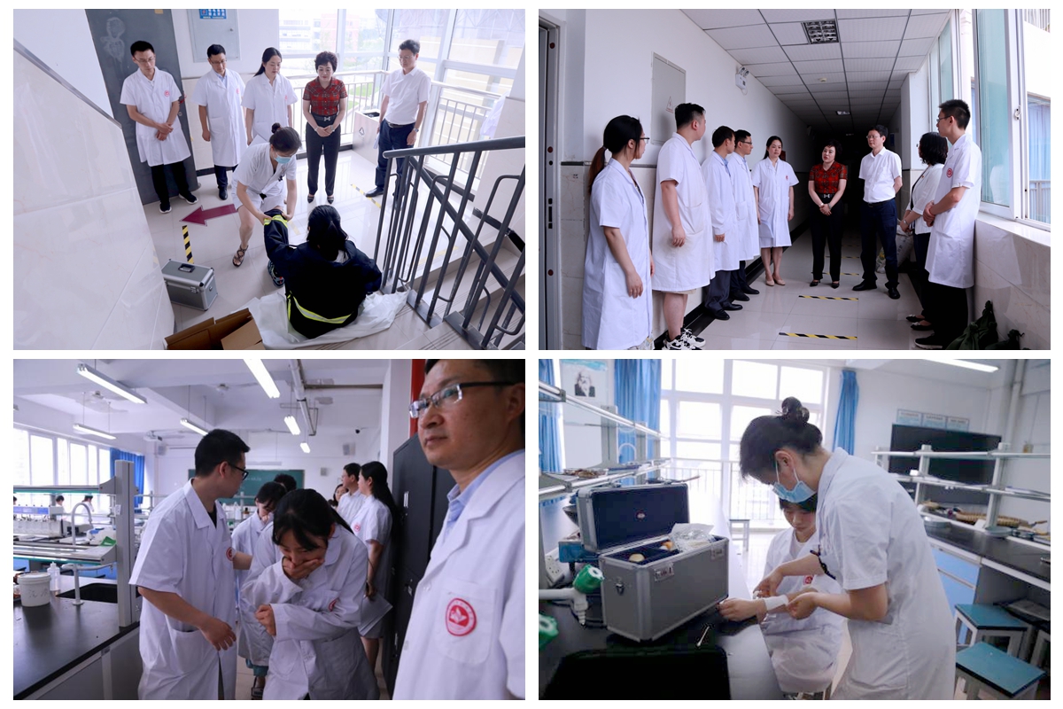 为进一步贯彻落实四川省安全生产委员会、省卫健委、省消防安全事件指挥部关于高校安全事故预防工作的相关文件精神,加强实验室安全教育,强化师生的实验室安全防护意识,增强师生应对实验室突发安全事故的应急处置能力,7月1日,学院组织开展成都校区新实训大楼药学实验中心应对实验室突发安全事故应急演练活动。学院党委书记江涛、院长张先庚全程督导,副院长姚永萍现场指挥,药学系、相关职能部门领导及系部师生代表共80余人参加。