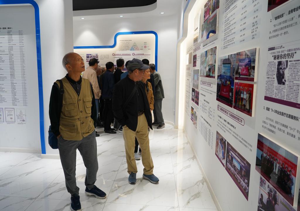 张先庚院长代表全院师生热烈欢迎退休老同志参观德阳校区,并亲自向大家介绍学院近年在人才培养、专业建设、校园文化、产教融合、服务社会、对外合作交流等取得的业绩。陪同退休老同志参观了学校新建护理实训中心、图书馆等。