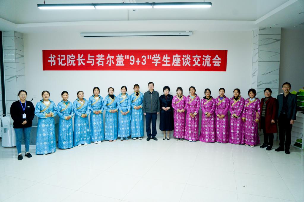 党史学习教育开展以来,学院坚持把“我为师生办实事”贯穿党史学习教育全过程。为聚焦同学们“急难愁盼”的现实问题,切实为学生办实事解难题,为学生健康成长成才创造良好的条件,10月19日下午,学院在成都校区学生活动中心举行了书记、院长与若尔盖“9+3”学生座谈交流会。学院党委书记江涛,党委副书记、院长张先庚,党委副书记张志林及学生工作部、“9+3”办公室学生管理老师和若尔盖“9+3”学生共计19人参加座谈会。